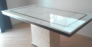 Uma das maiores vantagens de escolher uma mesa em mármore ou granito é que esses materiais são fáceis de limpar e manter. Basta usar um pano úmido para limpar a superfície e manter sua mesa com aparência nova por muitos anos. Além disso, oferecem uma variedade de acabamentos, desde o polido até o fosco e o escovado. Cada acabamento cria uma aparência única, adicionando personalidade à sua mesa.